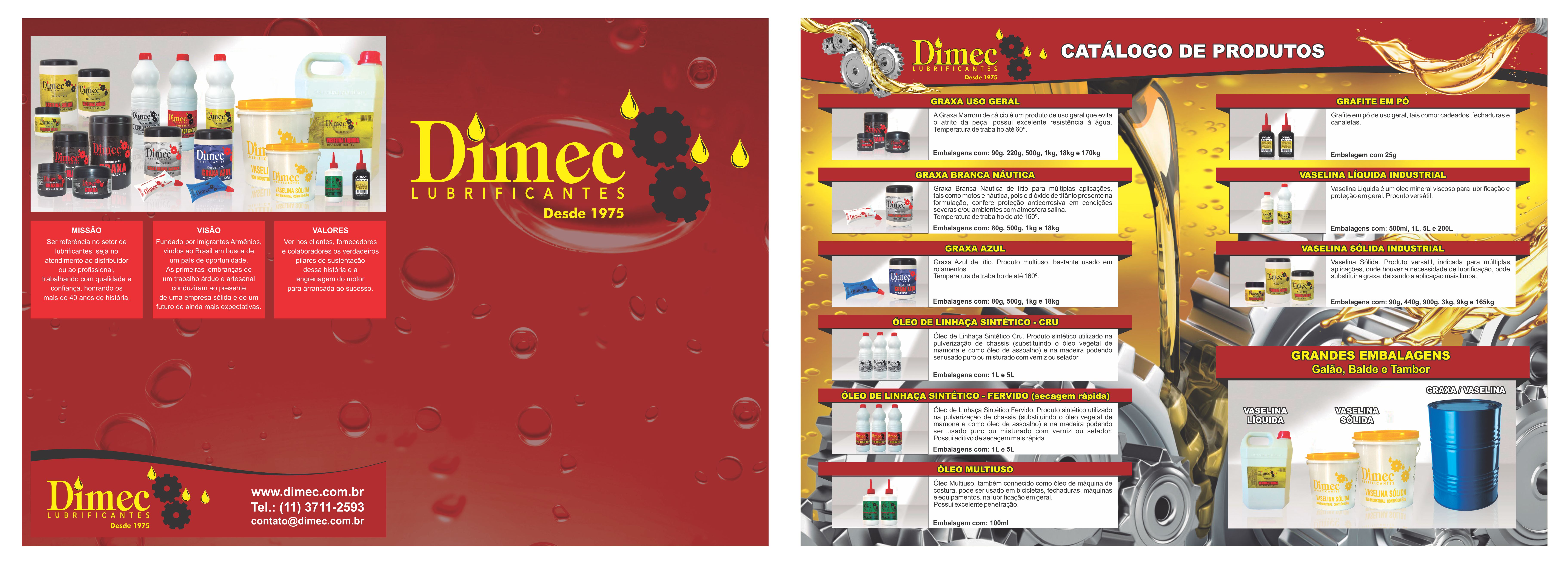 A Industria Dimec é uma tradicional empresa de lubrificantes a mais de 40 anos no mercado, oferecendo produtos de qualidade e um excelente negociação comercial, navegue em nossa nova home page, conheça nossa linha de produtos e depois entre em contato conosco!